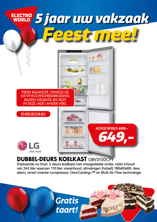 LG DUBBEL-DEURS KOELKAST GBV3100CPY